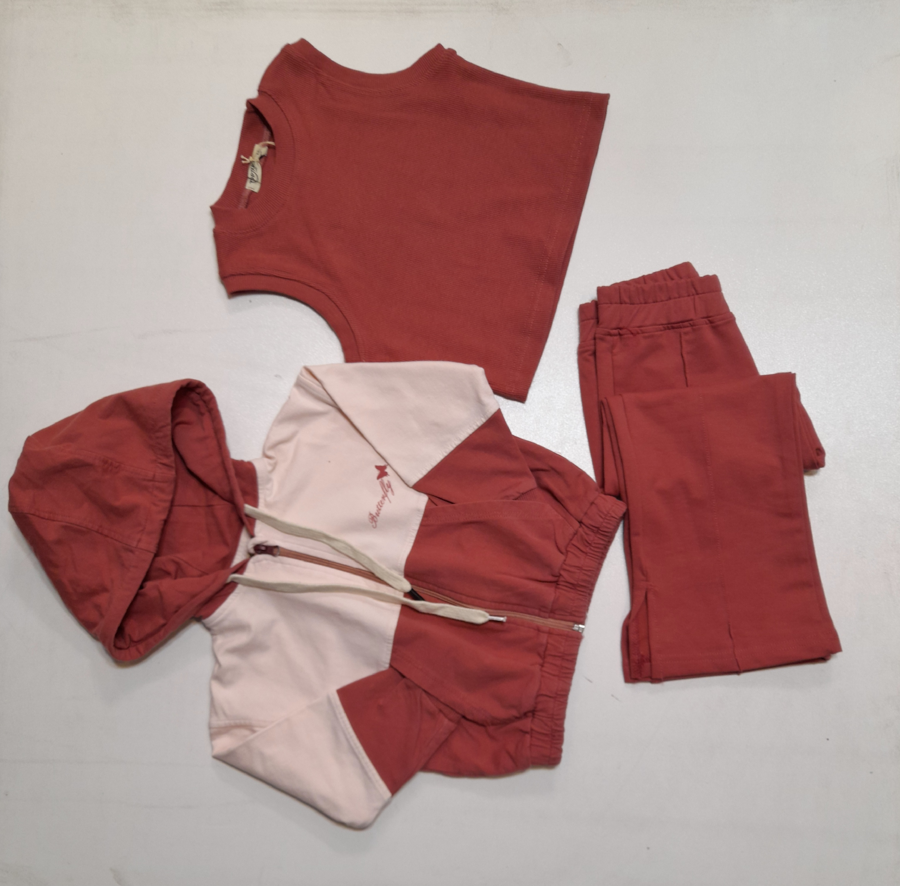 عرض تاپ ۴۷ سانت-قد تاپ ۵۲سانت، عرض رویه ۶۰سانت-قد رویه ۶۵سانت، قد شلوار ۹۰سانت ( سایز ۶۰) ۱۰ تا ۱۱ سال