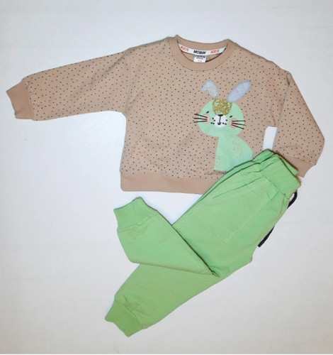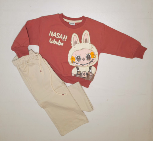 ناموجودست بسیار شیک دخترانه بیسکویتی آستین بلند شلوار فول بگ جنس بیسکویتی گرم بالا تیپ لاکرا