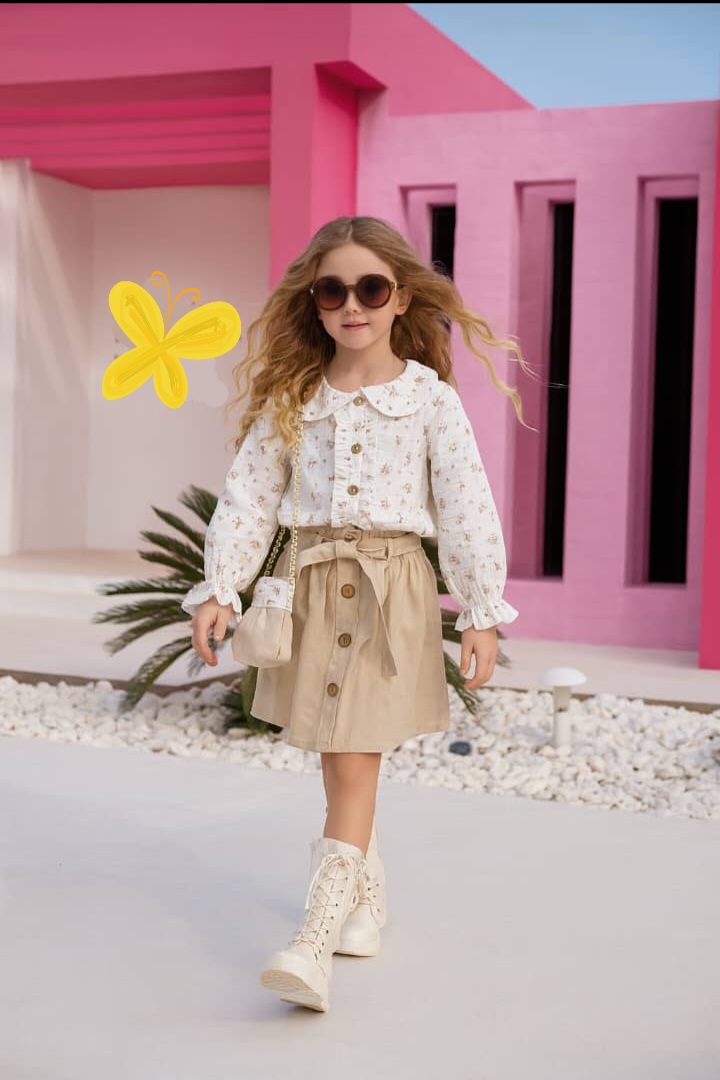 ناموجودست دخترانه سه تیکه جنس بلوز دبل فیس، جنس دامن کتان + کیف بسیار شیک مناسب برای مهمانی